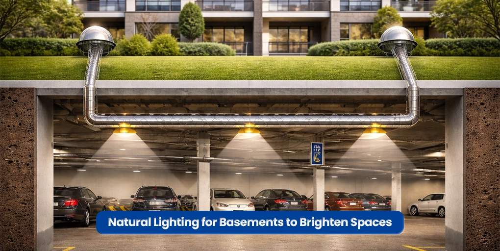 Basement lighting through daylighting systems to bring natural light in spaces. Meanwhile a tubular daylighting system collects sunlight from the roof and brings natural light to the depths of the basement so that electricity doesn’t have to be used for lighting in bright daylight. This increases brightness, reduces utilities and provides a comfortable environment for locations such as below-ground parking, storage rooms and mechanical areas.